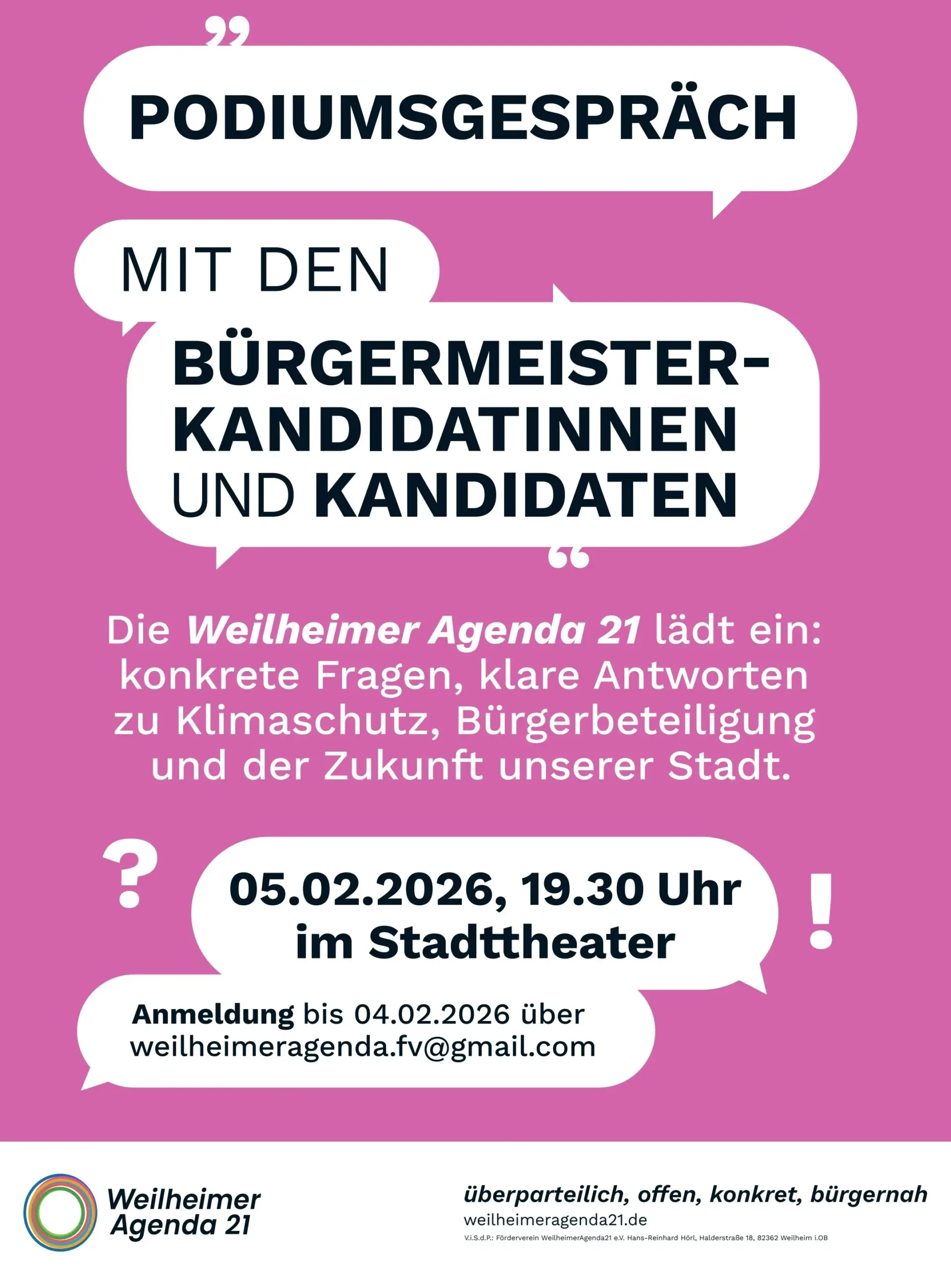 Anmeldung unter: weilheimeragenda.fv@gmail.com