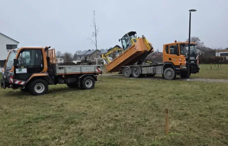 Die Pfade des Parks, das Sandarium (Lebensraum für bodennistende Insekten) und das Eidechsen- Biotop werden mit Hilfe von Baumaschinen der Stadtwerke Weilheim angelegt.