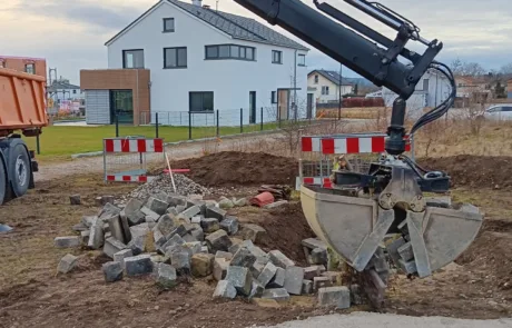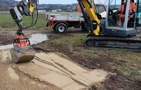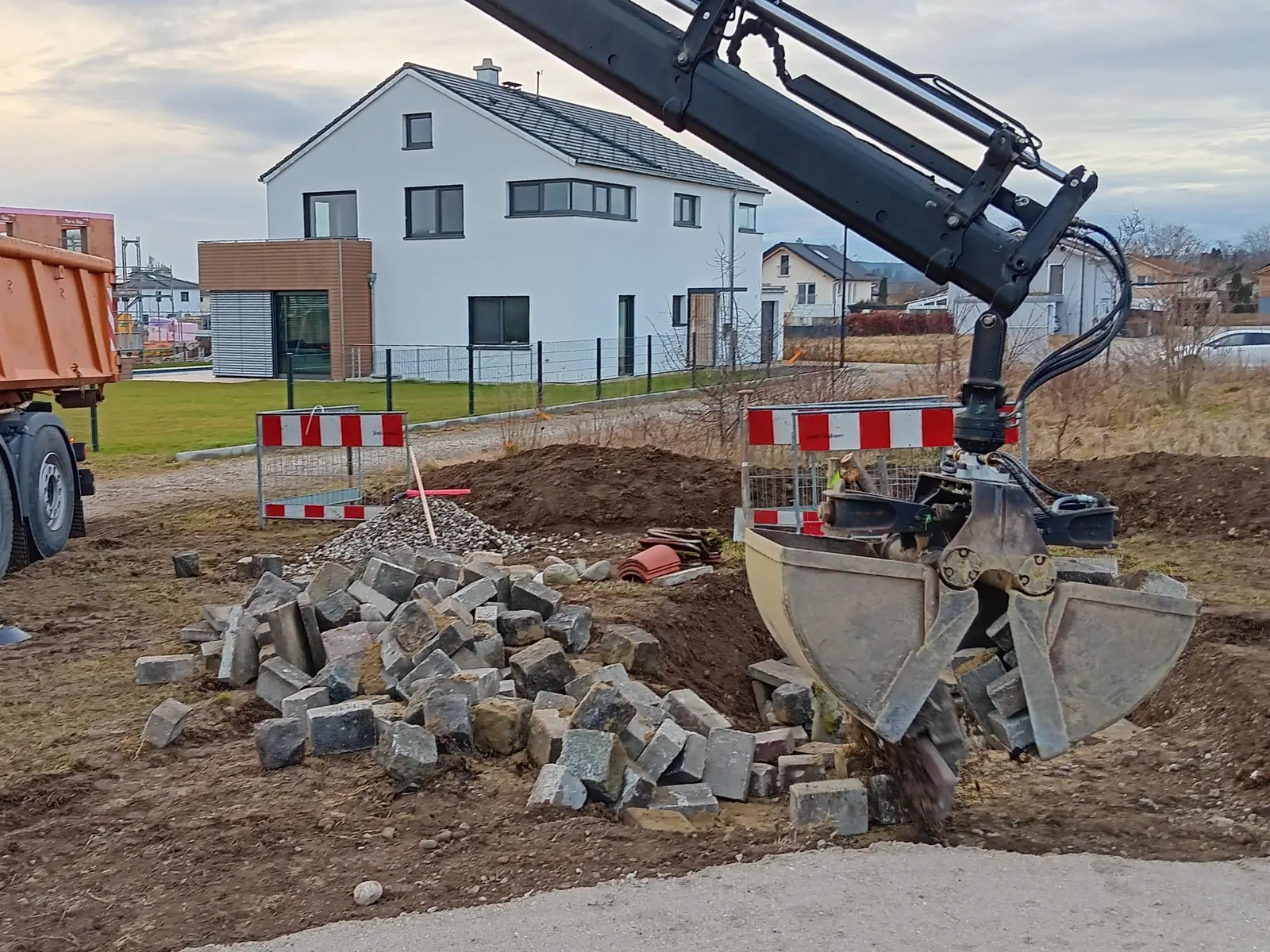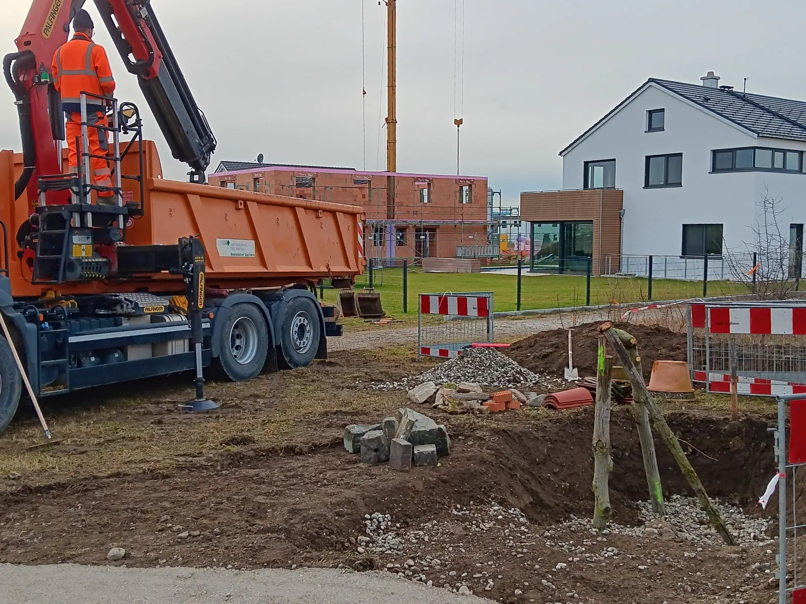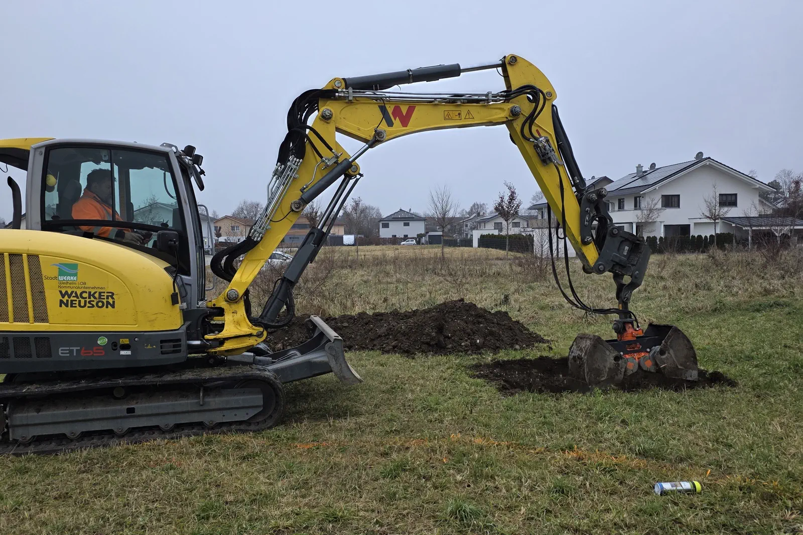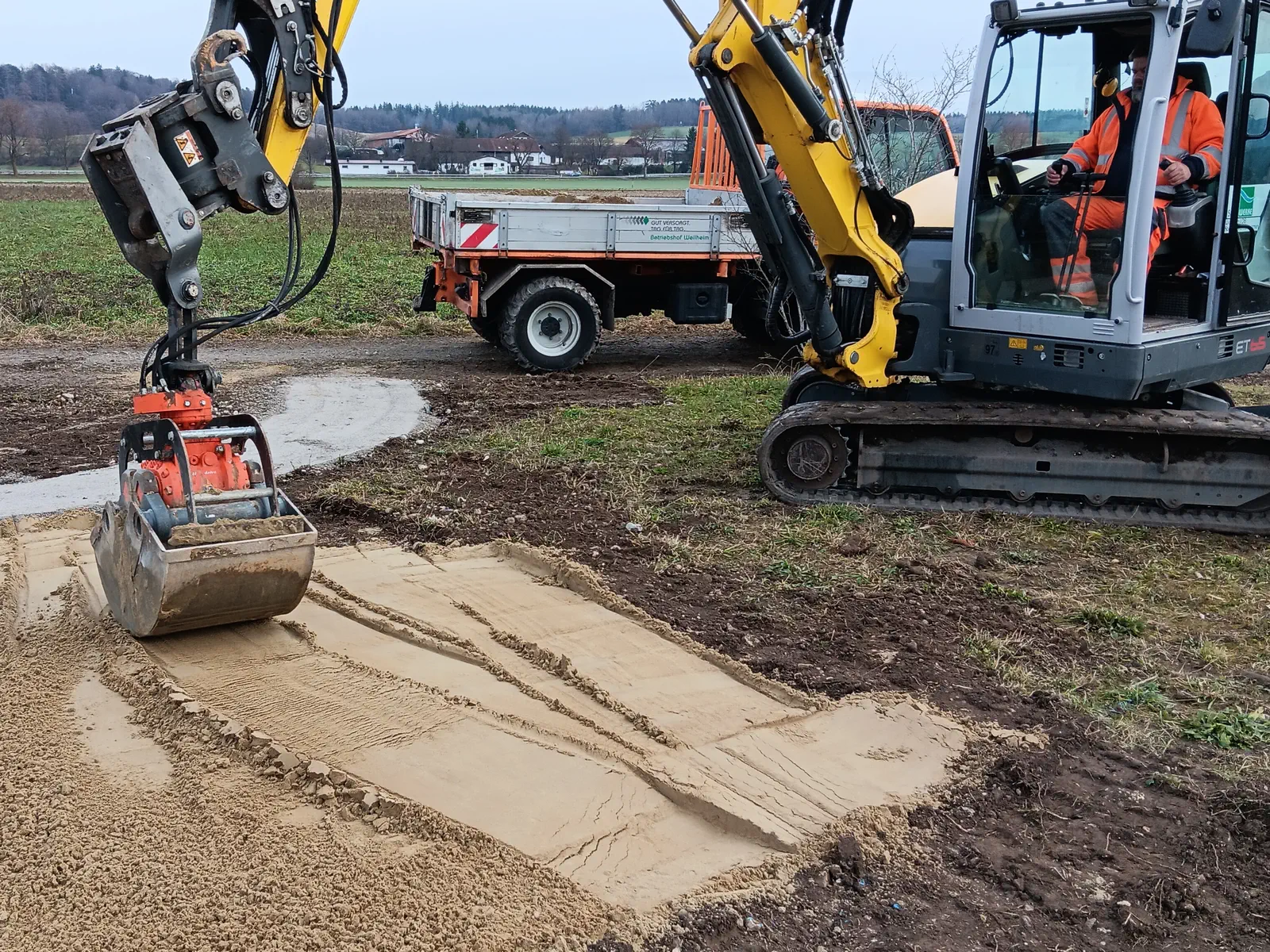 Die Stadtwerke Weilheim unterstützen mit schwerem Gerät professionell die weitere Umsetzung des geplanten Entwurfes.