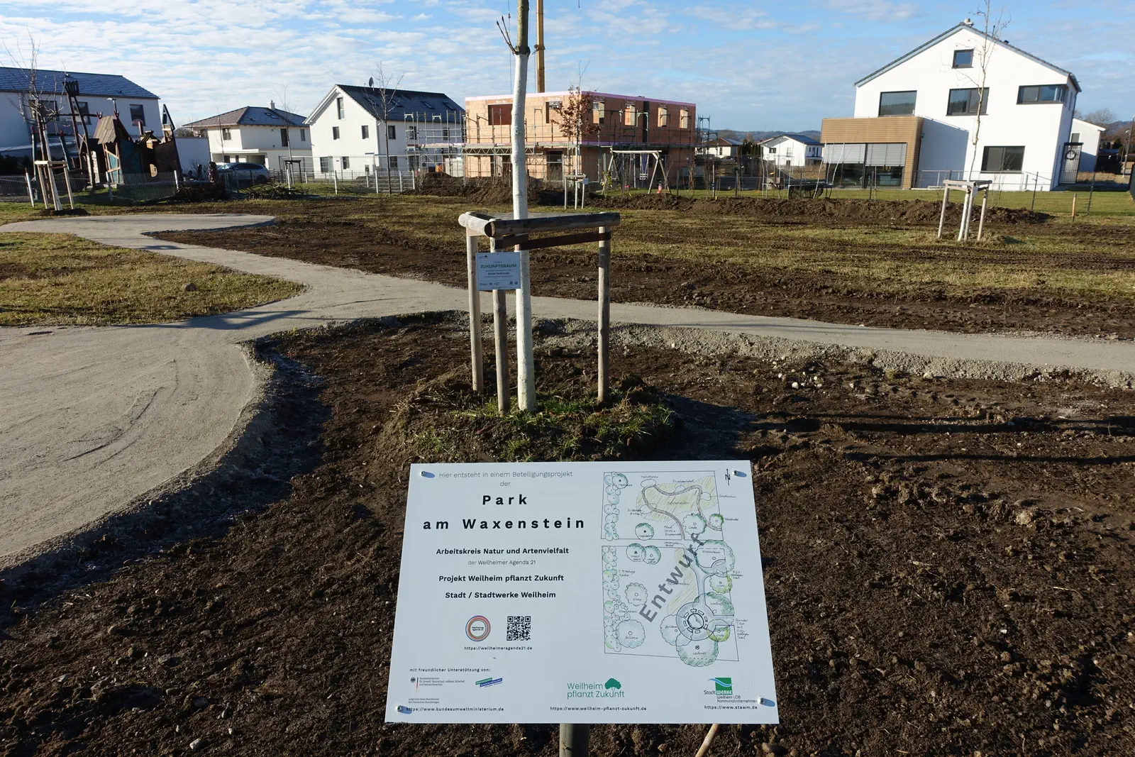 Auf dem als öffentliche Grünfläche ausgewiesenen Grundstück an der Waxensteinstraße entsteht ein neuer naturnaher Park. In Zusammenarbeit des Arbeitskreises Natur und Artenvielfalt der Weilheimer Agenda 21, der Stadt Weilheim, den Stadtwerken Weilheim und engagierten Anwohnerinnen und Anwohnern wird die Fläche zu einem Lebensraum für Mensch und Natur weiterentwickelt.