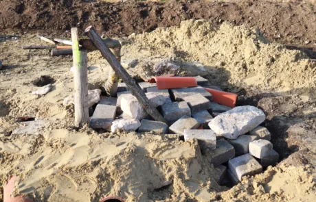Der Rückschnitt der ursprünglichen Vegetation, sowie die zukünftigen Lagen von Pfaden, dem Eidechsen – Biotop und Sandarium (Lebensraum für bodennistende Insekten) werden geplant.